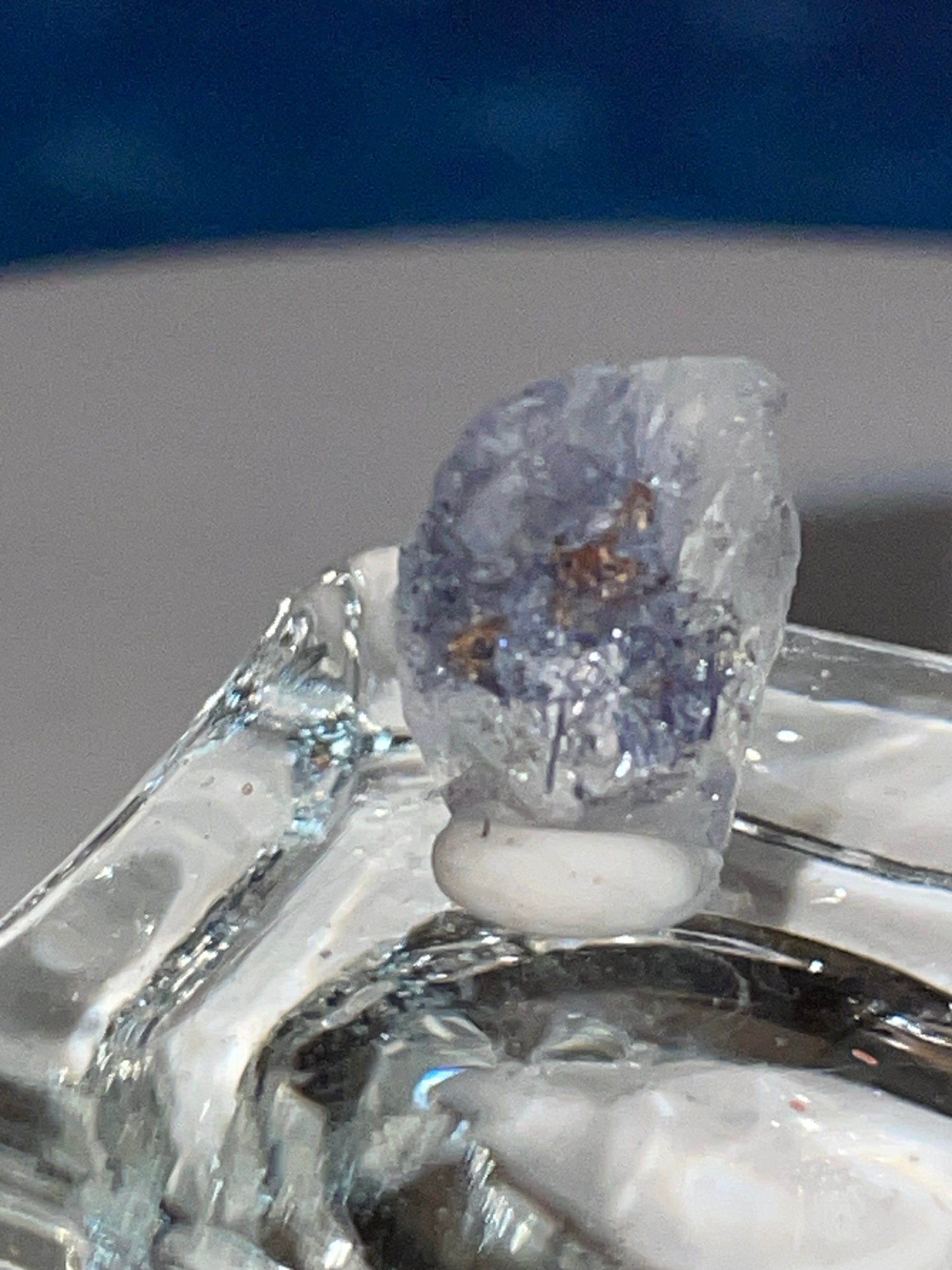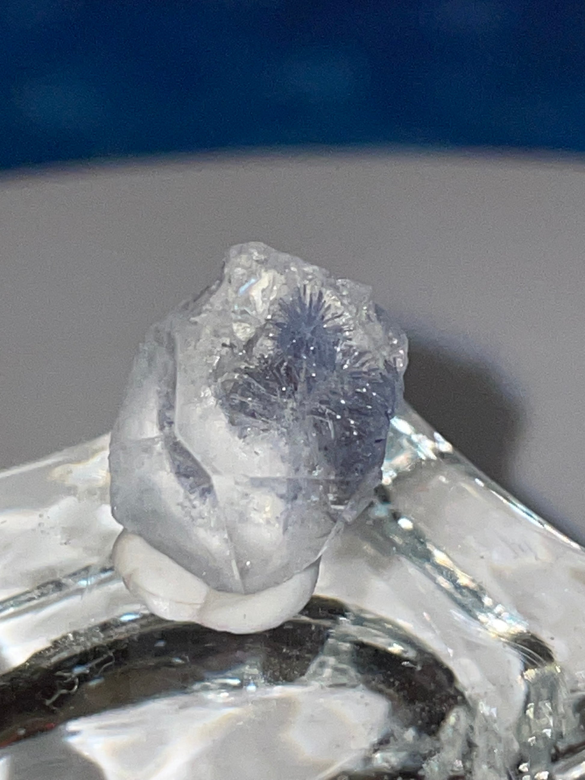 Dumortierite Quartz is a type of quartz that contains inclusions of dumortierite, a blue mineral. The blue color can vary from light to dark blue, and the inclusions often form fibrous or needle-like structures within the quartz crystals. It is found in only a few places in the world, including Brazil, Namibia, and Madagascar. Dumortierite quartz is used in jewelry and other decorative objects.