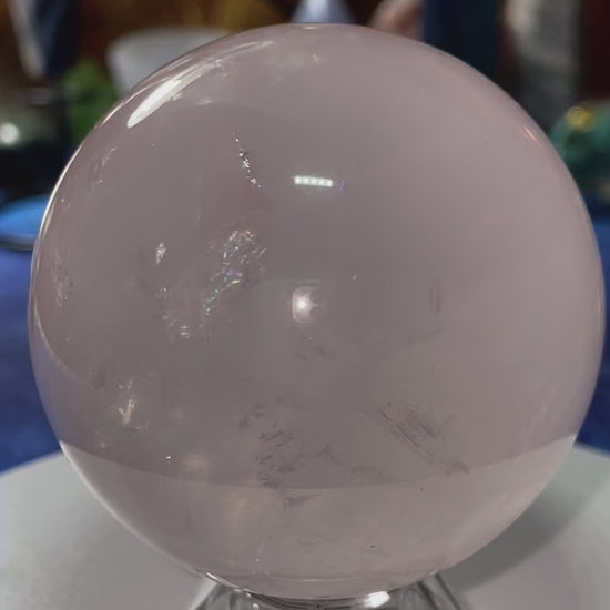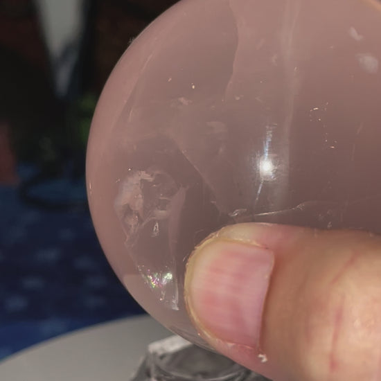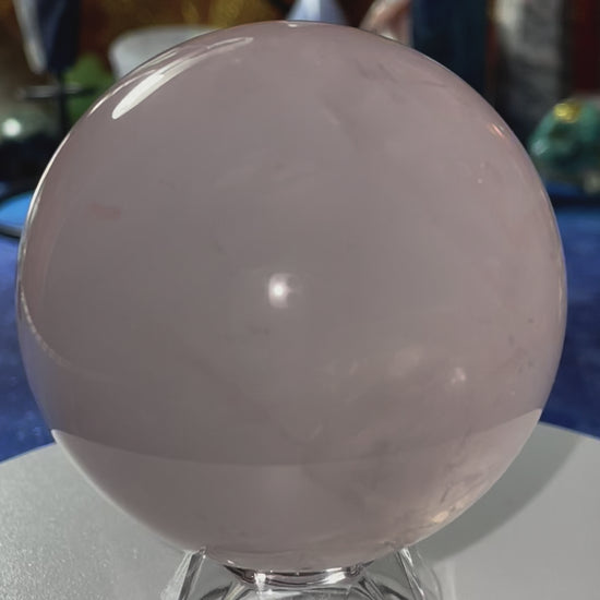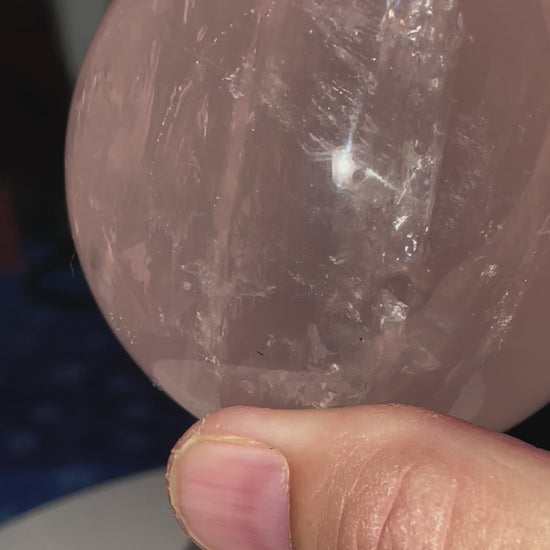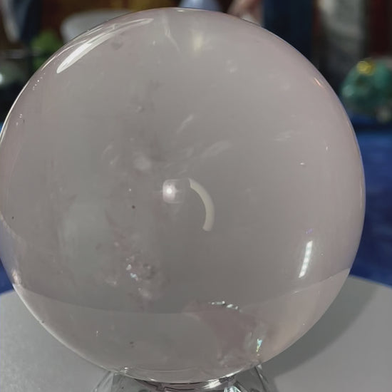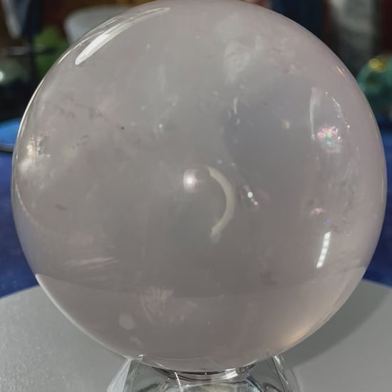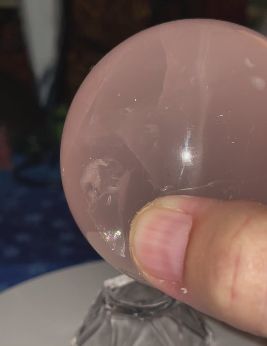 This Girasol White Rose Quartz is ethereal. The clear areas are translucent making it easy to see the rainbows inside. If that isn’t enough, the asterisms and stars are breathtaking!! This sphere is 61.1 mm across and weighs in at 1 pound 2 ounces. Girasol White Rose Quartz is a stone of gentle but powerful calming energy. It promotes mental clarity and enlightenment. It also encourages creativity, focus, and balance. It is a wonderful stone for opening one to receiving messages from Spirit.