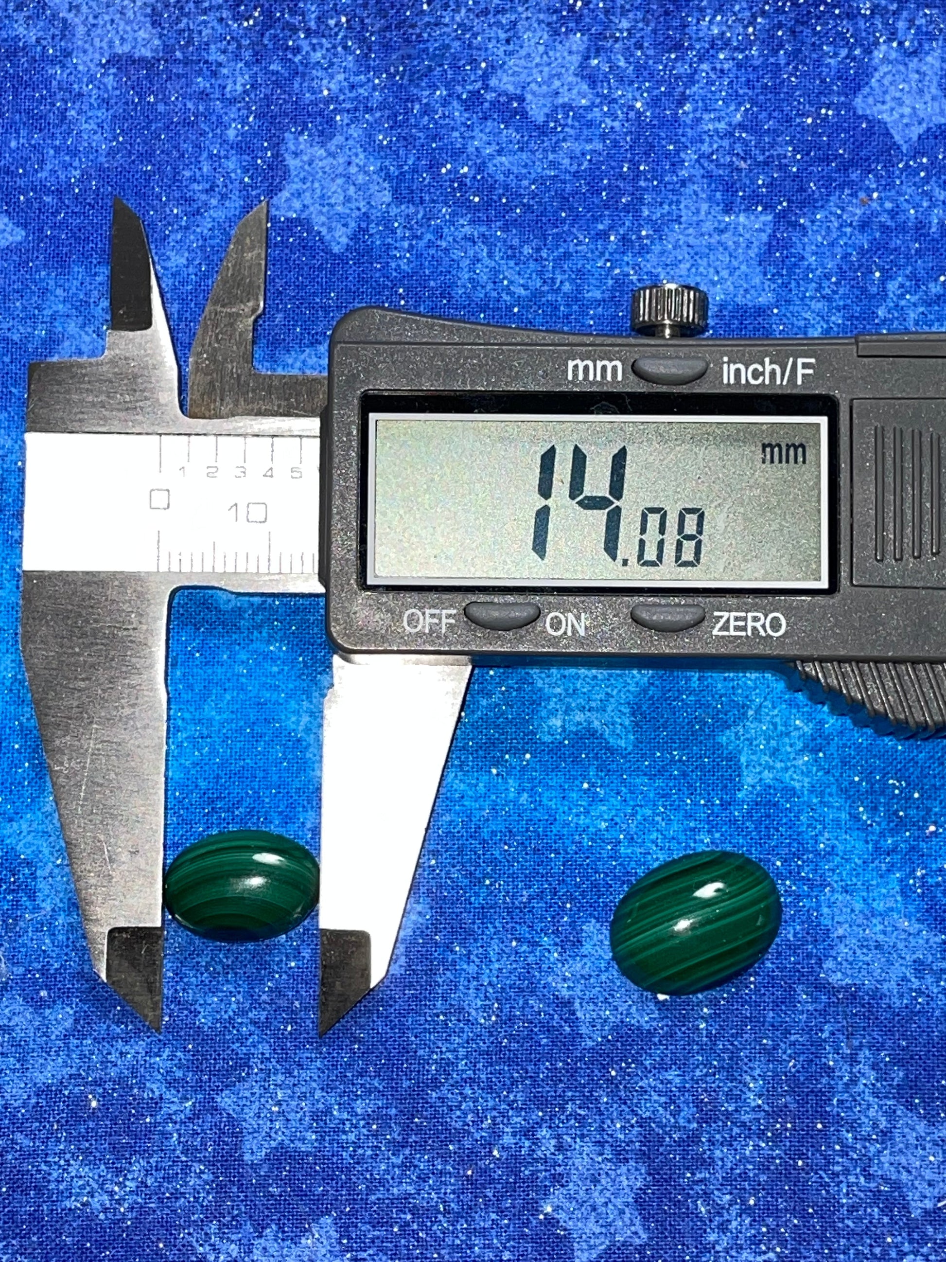 This Malachite is the perfect size for jewelry making. It would make a beautiful pendant or ring. It measures 14 X 10 mm. This is the smaller of the two shown cabochons.