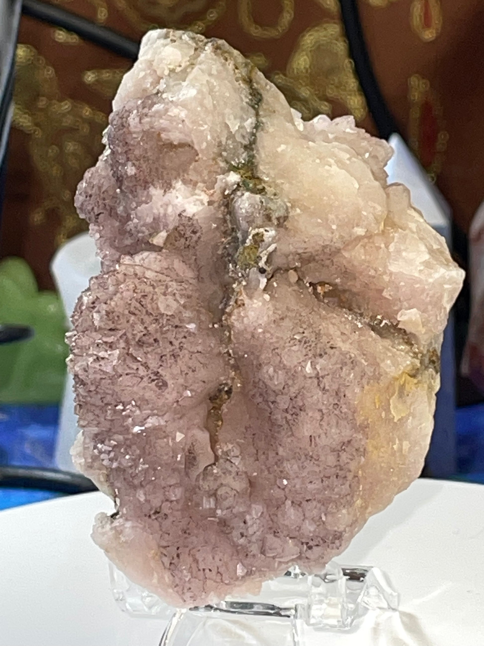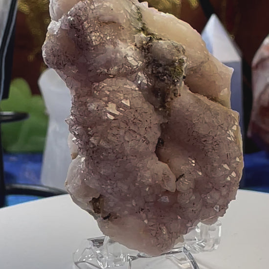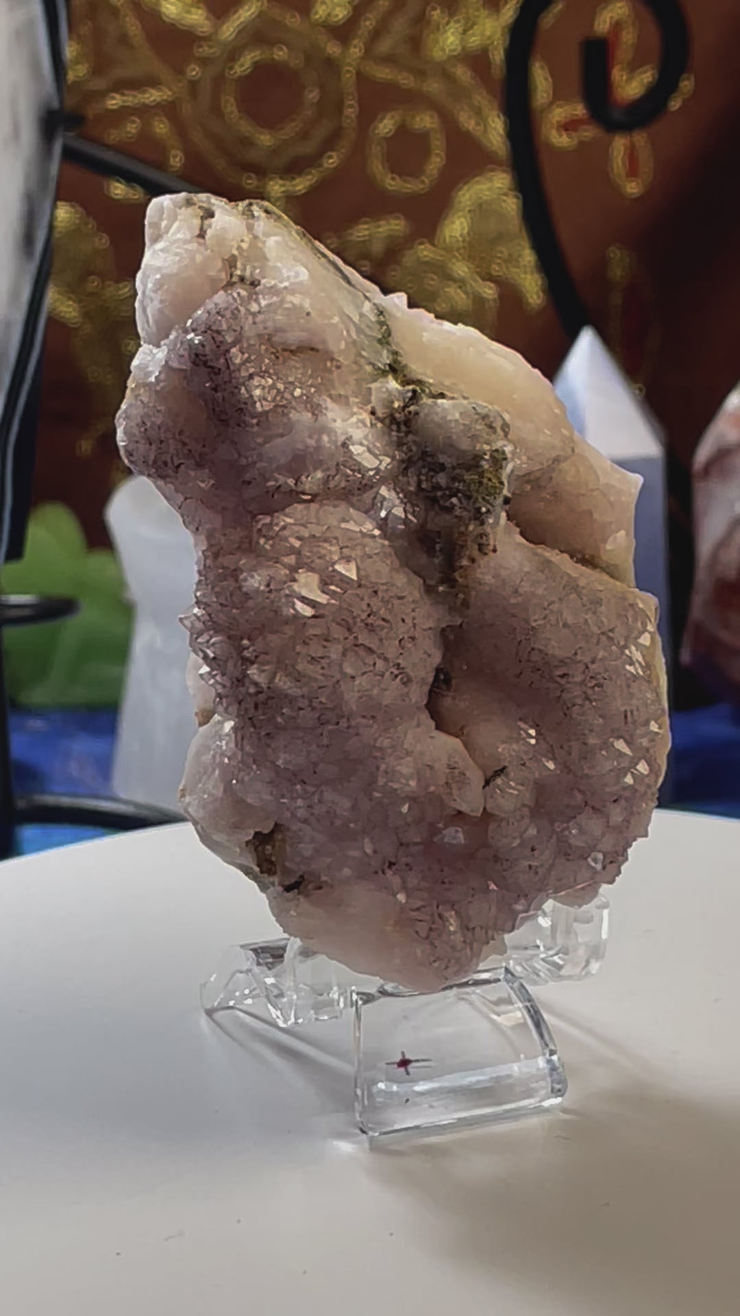 This is a beautiful Pink Peruvian Quartz raw specimen. It is a nice chunk weighing in at 121 grams. The color is mauve purple with lots of sparkle.