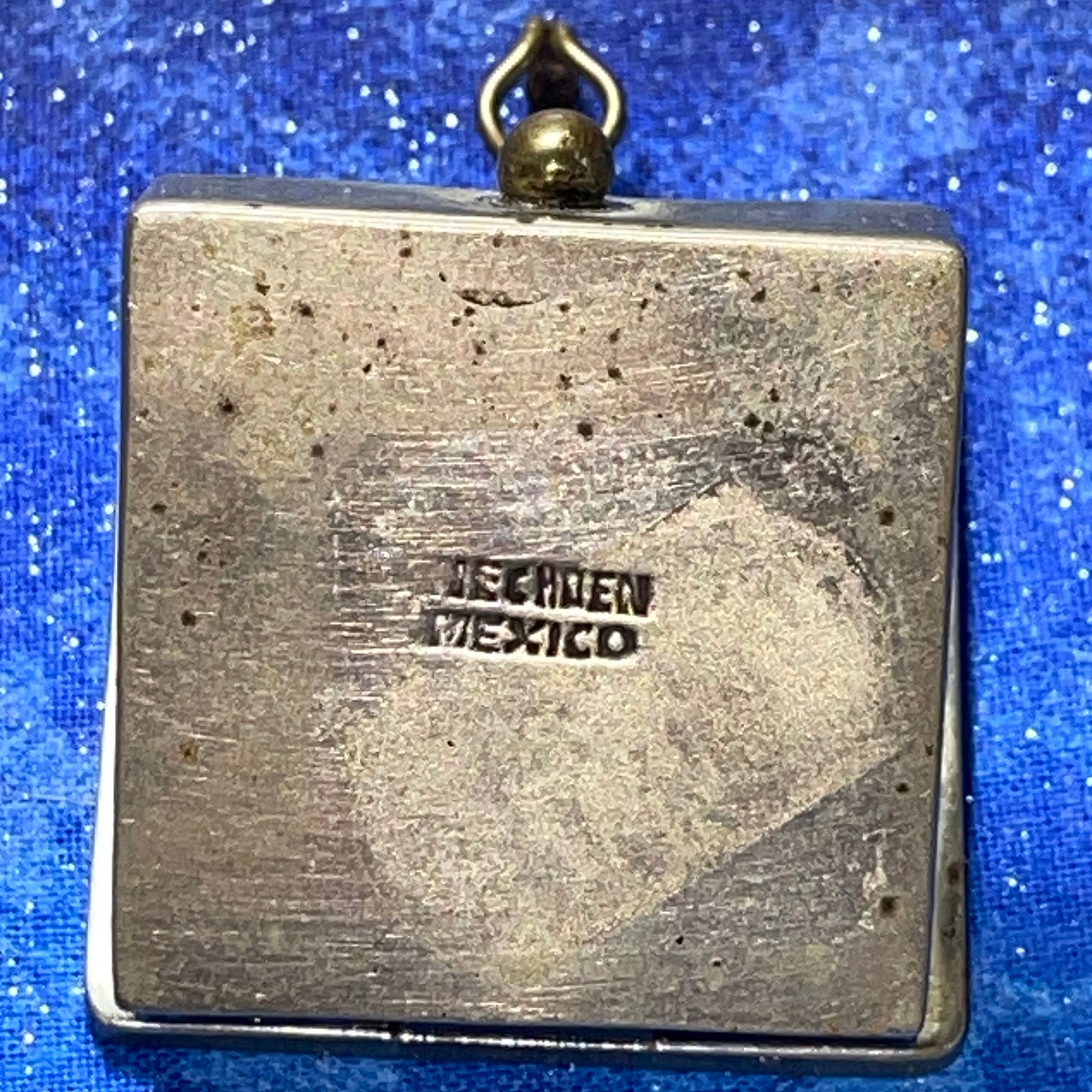 This is a Vintage Abalone Pillbox. It is approximately 1 1/3 inches square. The back is marked “HECHEN MEXICO.” The lid is inlaid with beautiful Abalone pieces. They are very colorful and ethereal. There is a lot of depth in them. I believe this pillbox is silver plate as there are no markings indicating otherwise. The box has the same type of patina that aged silver has. This can be left as is or removed, but I will leave that up to the next owner. The box has marks and scratches commensurate with its age. The hinge and latch are in good working order. A beautiful piece for a vintage collection or everyday use.