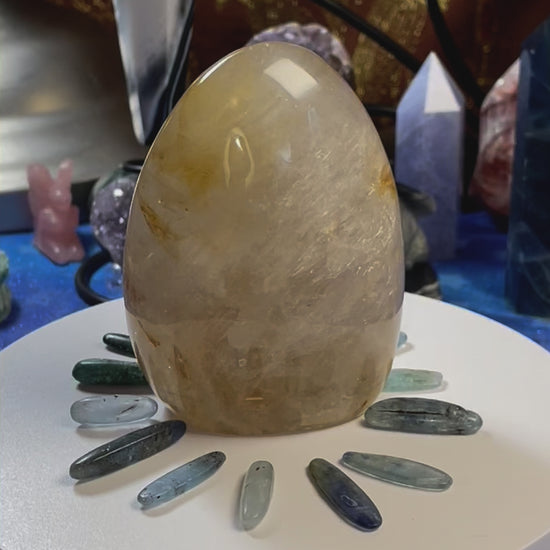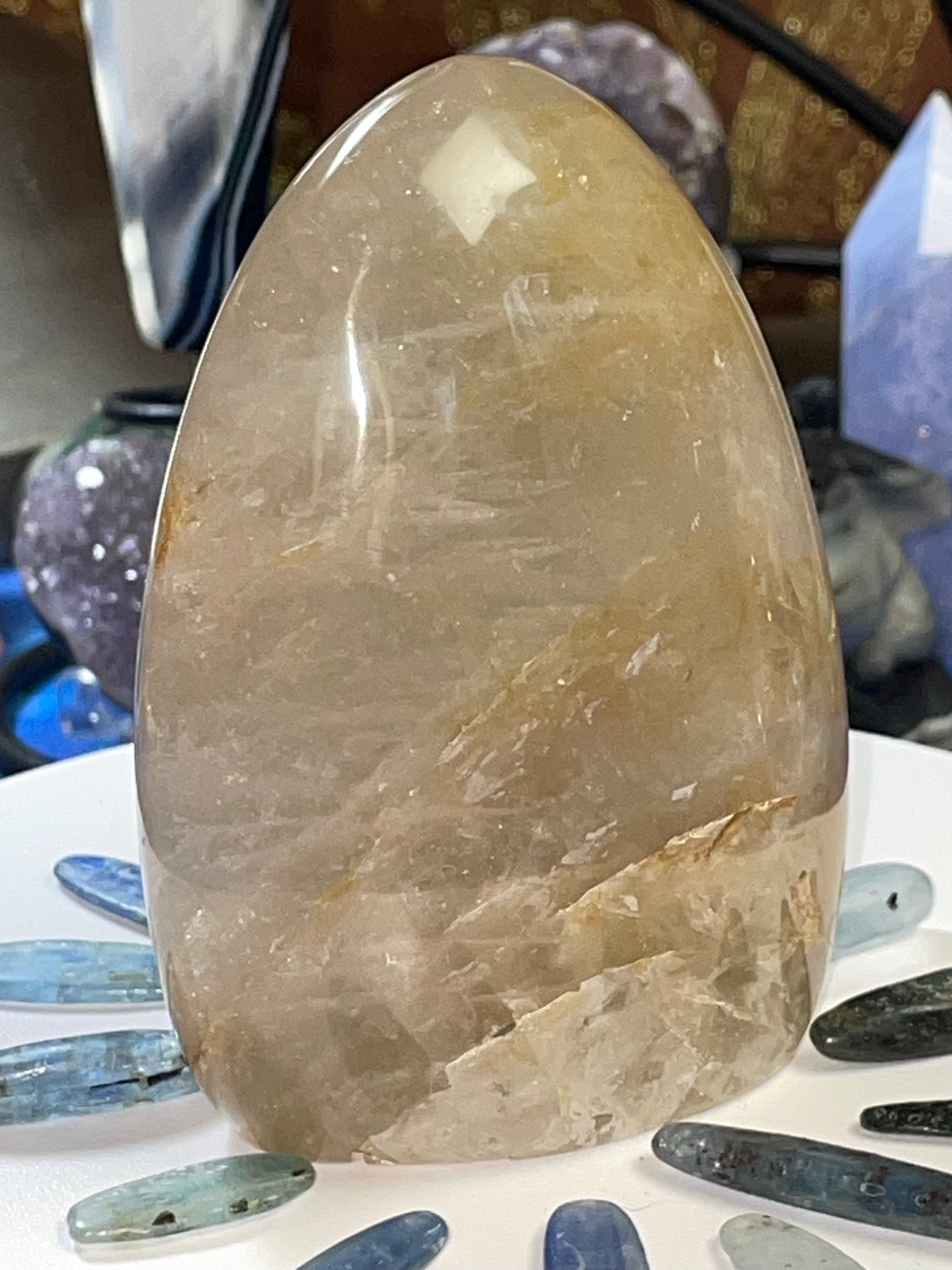 also called fire quartz, while yellow and brown ones are called GOLDEN HEALER QUARTZ . It helps manifest new beginnings, promotes positive thoughts, and energizes the body. Hematoid quartz instills wisdom that leads to higher awareness and spiritual growth. It protects against psychic attacks and the ill effects of unhealthy relationships. You can also use hematoid quartz to boost your willpower andmanage your emotions.